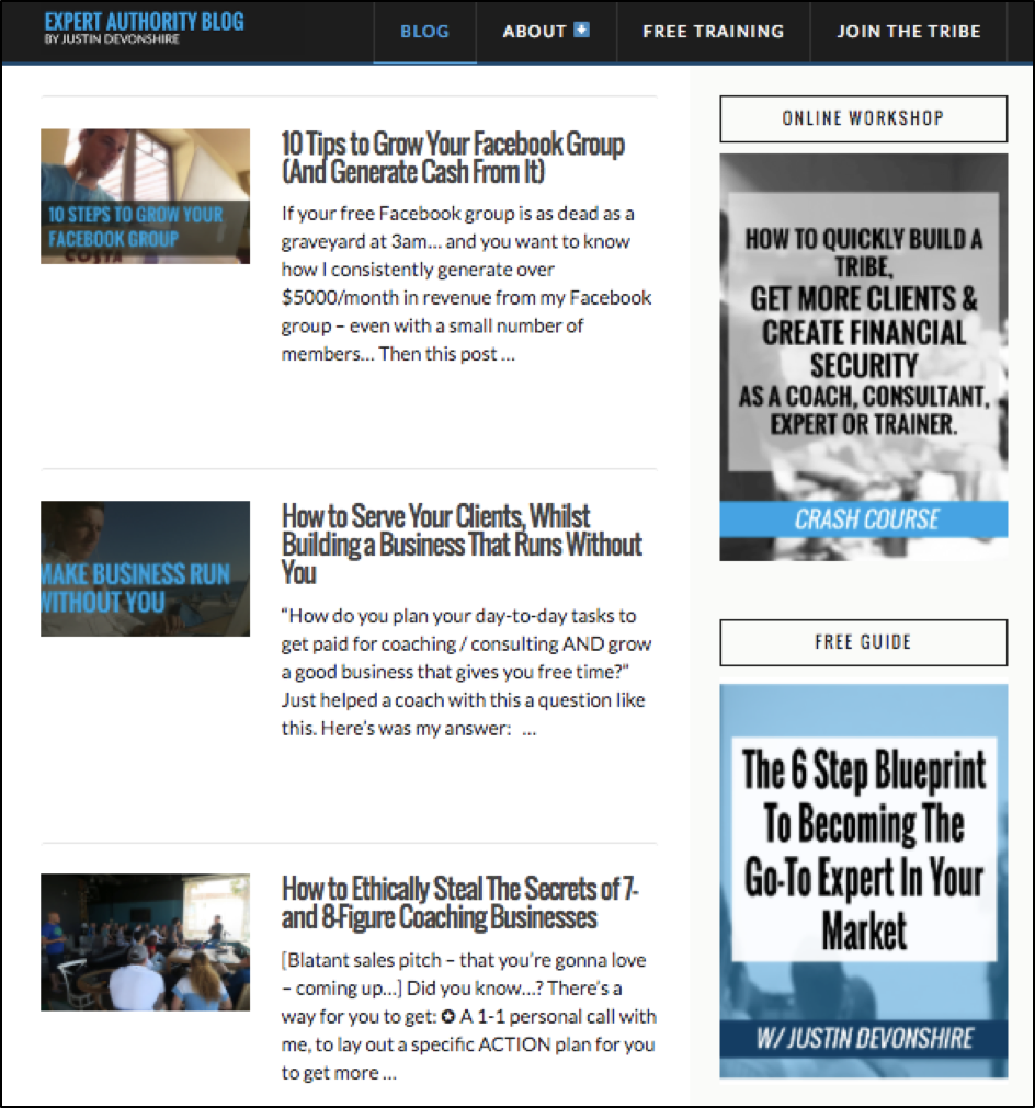 It starts with this blog / Authority Home site at www.justindevonshire.com (see screenshot, below)